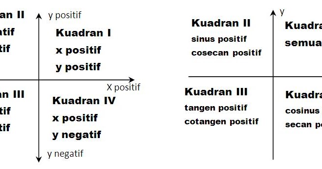 Dalam pelajaran matematika, terutama pada topik trigonometri, konsep kuadran sangat penting untuk memahami bagaimana nilai-nilai sinus (sin), kosinus (cos), dan tangen (tan) berubah sesuai dengan posisi sudut dalam lingkaran koordinat. Kuadran adalah pembagian lingkaran koordinat menjadi empat bagian yang masing-masing memiliki karakteristik khusus dalam hal tanda positif atau negatif dari fungsi trigonometri. Pemahaman tentang kuadran tidak hanya membantu siswa dalam menghitung nilai trigonometri, tetapi juga menjadi dasar dalam menyelesaikan berbagai masalah matematika yang melibatkan sudut dan segitiga.